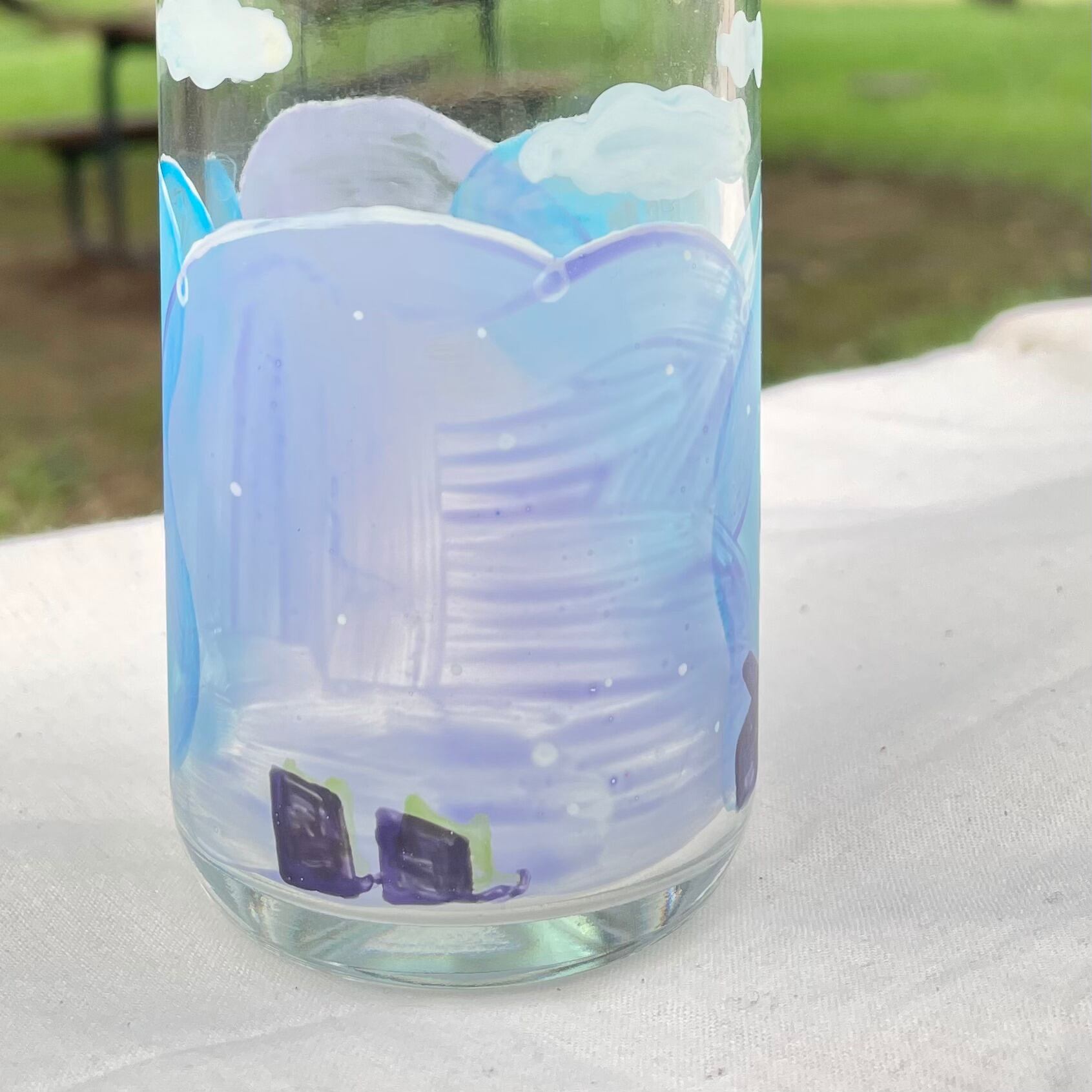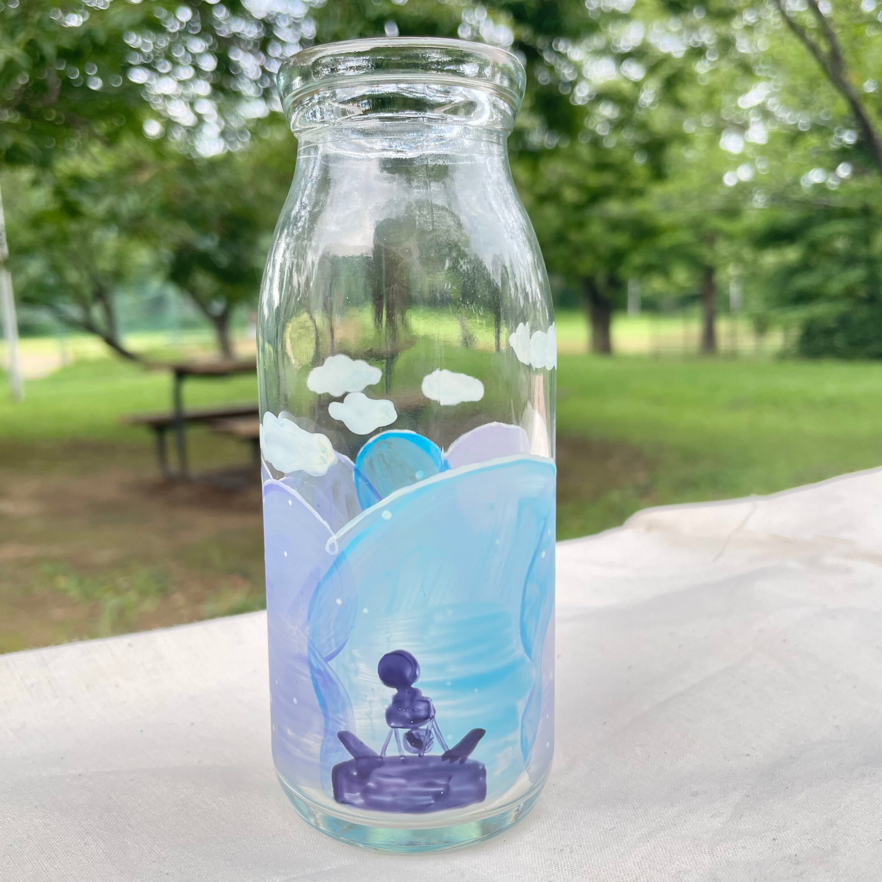 ガラス絵の具で絵付けをした一点物の牛乳瓶です。